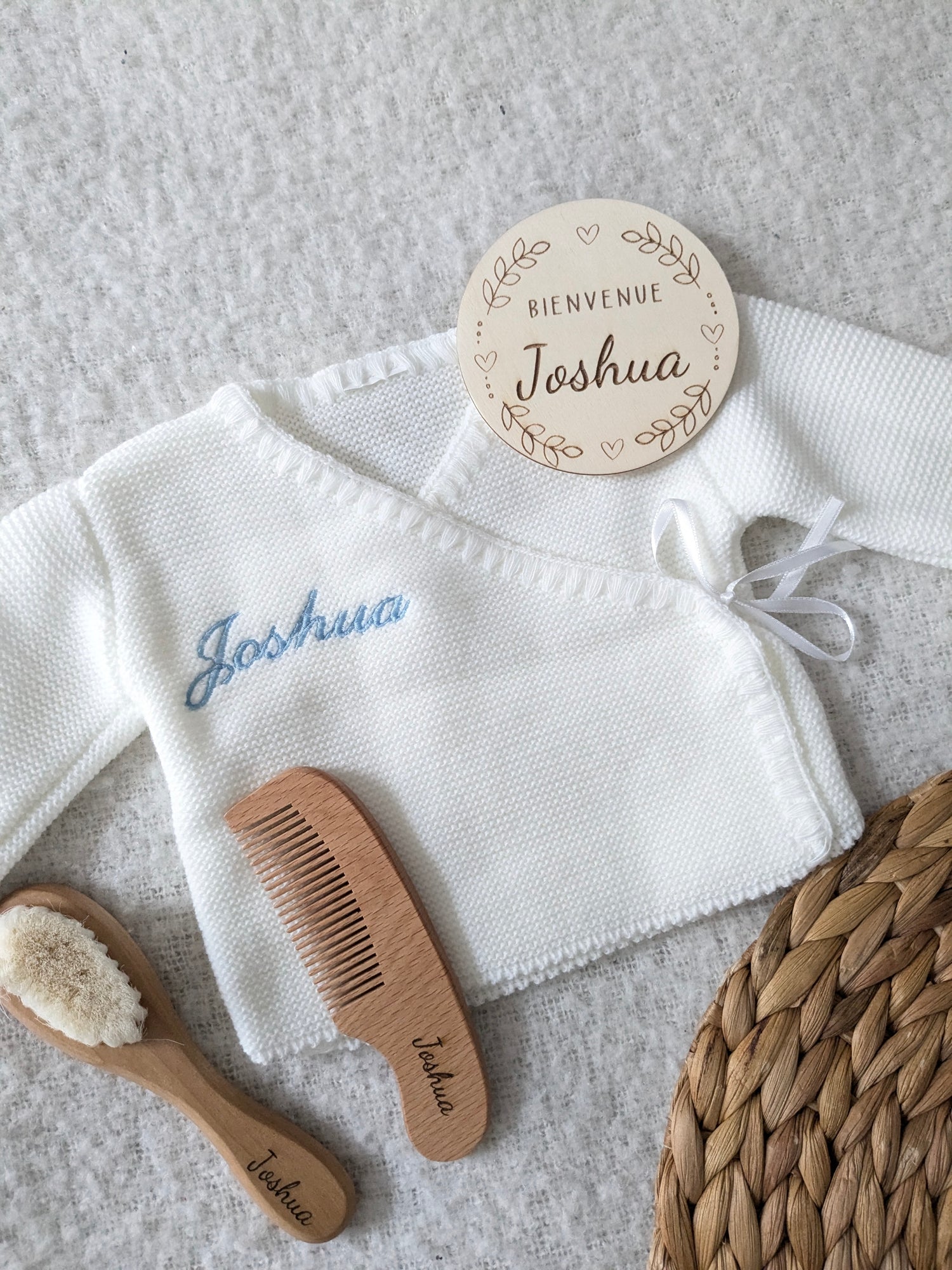 De couleur blanche et mixte, cette brassière en laine ira parfaitement aux bébés filles comme aux bébés garçons. Elle s'accordera parfaitement avec l'un de nos pyjamas de naissance personnalisé pour créer une tenue douce et bien chaude pour la maternité et les premiers jours de votre bout de chou ♥