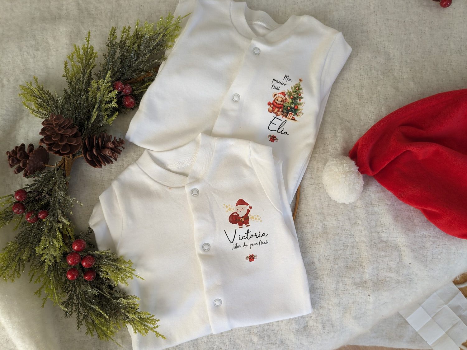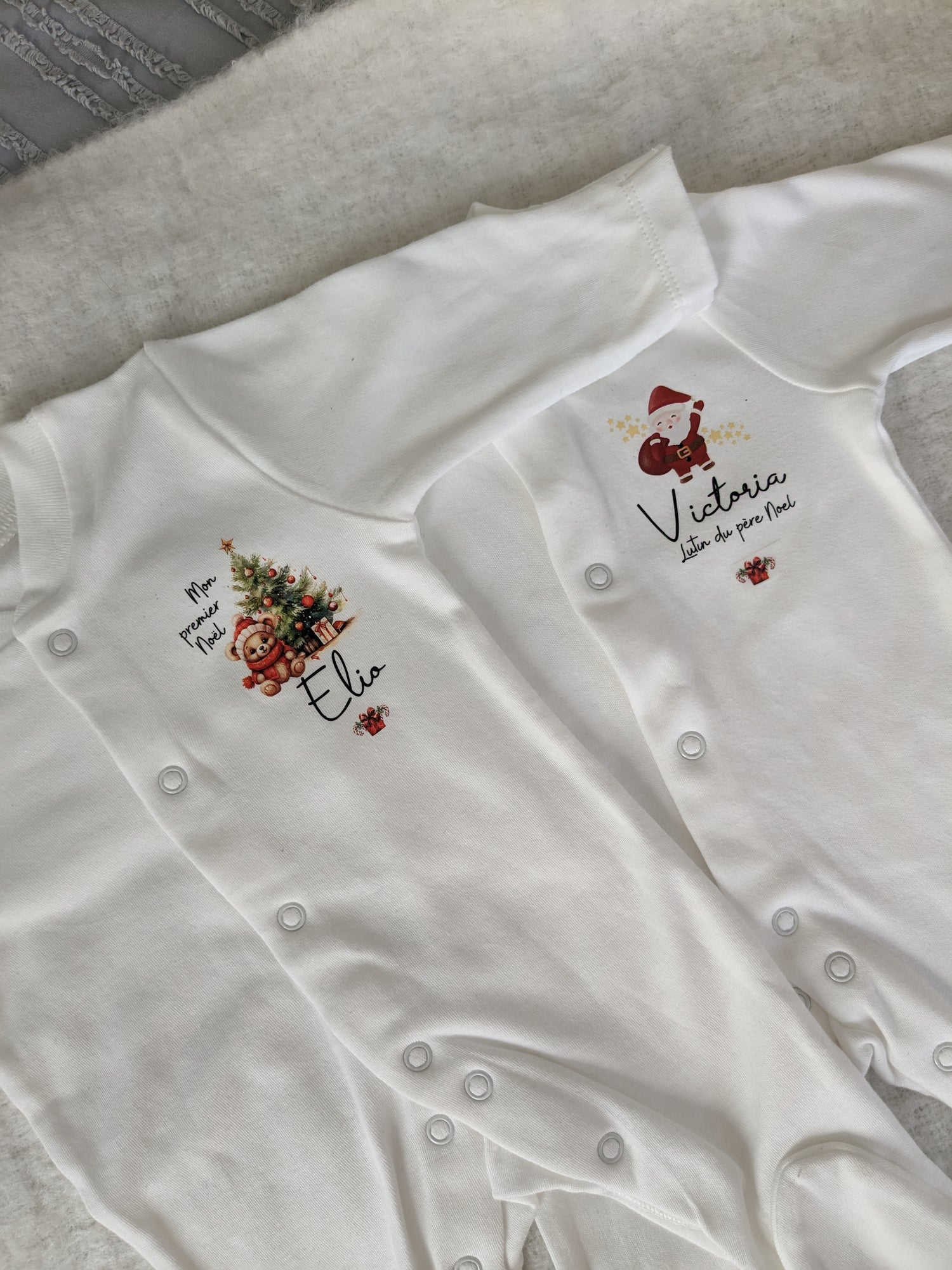 Offrez à votre bébé un pyjama de Noël unique et plein de tendresse, personnalisé avec son prénom.